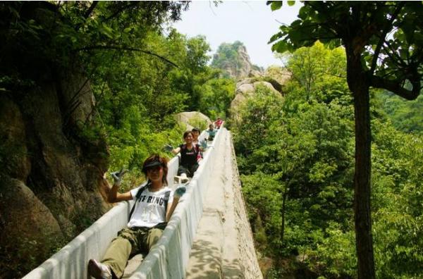 “六羊山通天河”景区是山岳型风景区中的盆景,小而精。有山有水有栈道,有树有泉有滑道。