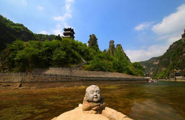 净影湖水清澈澄碧,200余尊摩崖石刻与山石融为一体。